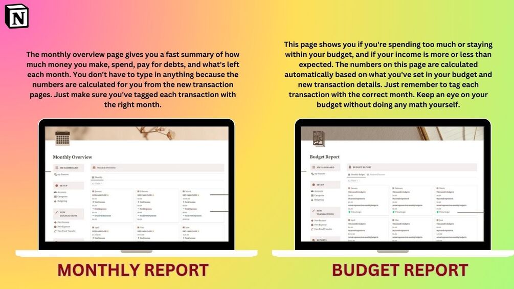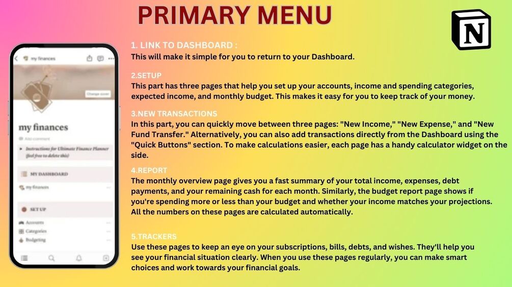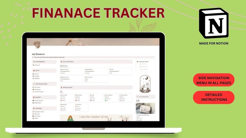 Notion Finance Tracker | Digital Financial Management | Ultimate Finance Companion | Budgeting and Transaction Organizer | Personalized Finance Reports | Debt and Bill Tracking | Financial Wellness Dashboard